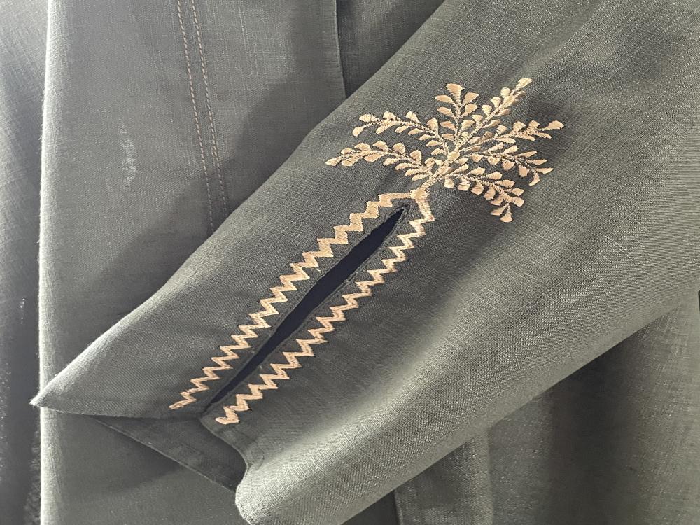 تطريز على الاكمام بشكل نخلة يحمل اللمسة السعوية بطابع حديث وبسيط .