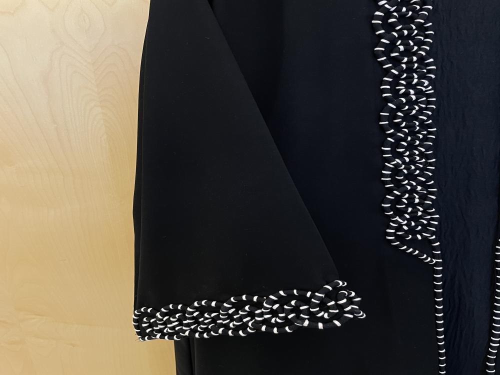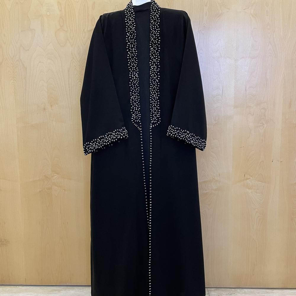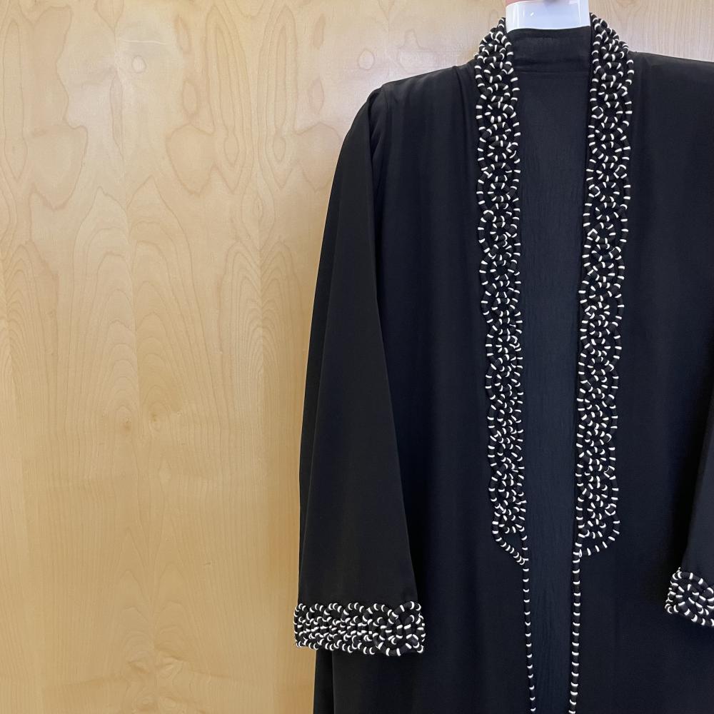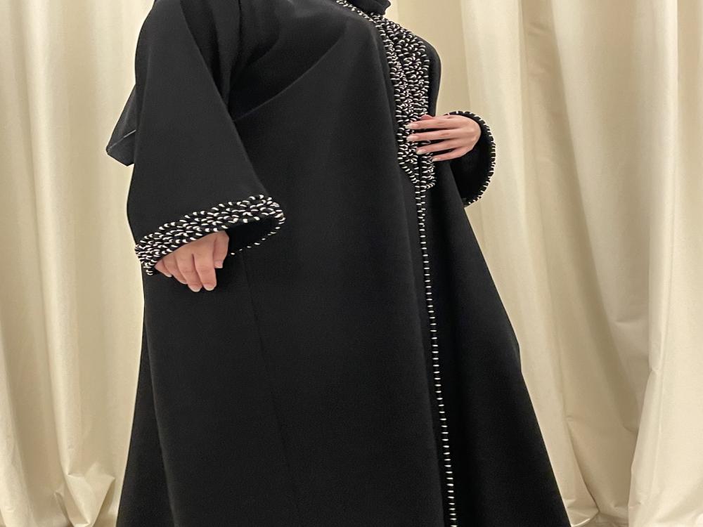 🧵العباية مشغولة بفن الكورال في التطريز – (Coral stitch) هو نوع من الغرز اليدوية التقليدية يُستخدم في التطريز لإضفاء لمسة زخرفية ناعمة وأنيقة.
