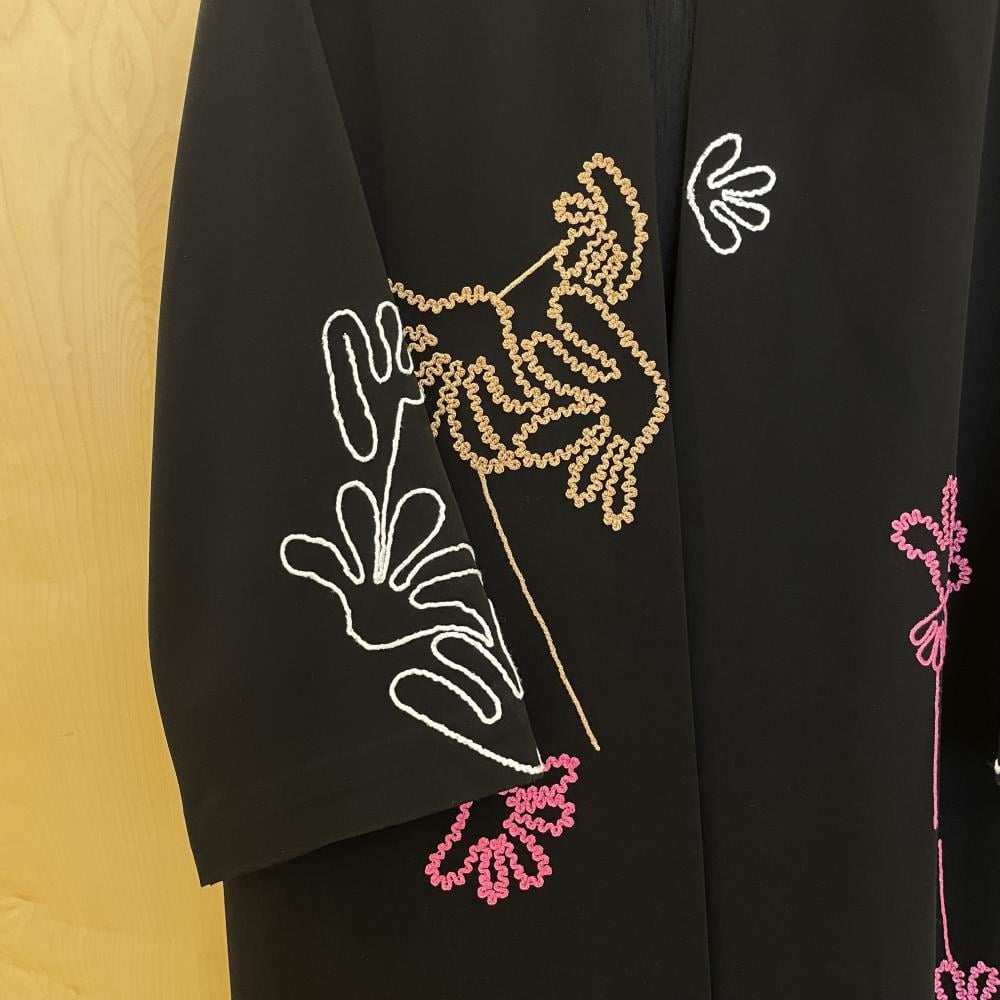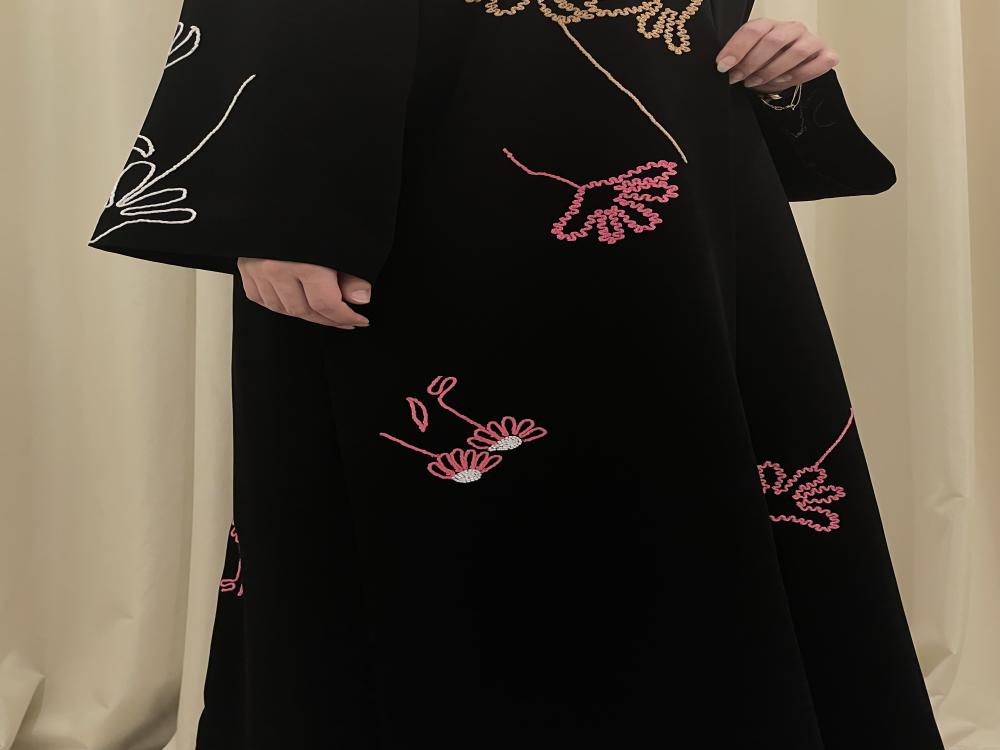 عباية سوداء كريب ناعم خفيف مع تطريز بالوان صيفية سعيدة مناسب للصيف والمناسبات الصباحية واليومية بارد وثابت